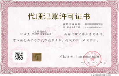 代理記帳資質證書